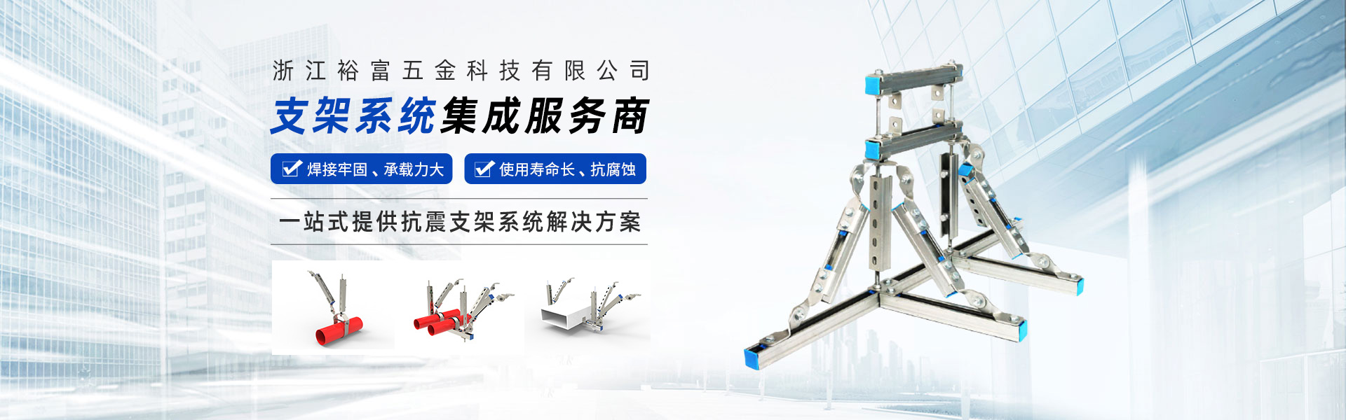 浙江裕富五金科技有限公司位于美麗的杭州臨安青山湖畔,注冊資金5000萬人民幣。是一家集研發(fā)、設(shè)計(jì)、制造、銷售、安裝、技術(shù)服務(wù)于一體的,專業(yè)從事抗震支吊架、管廊支吊架、綜合承重支吊架等,多功能、多元化的現(xiàn)代新興科技企業(yè)。 公司技術(shù)力量雄厚、設(shè)備齊全、工藝先進(jìn)、管理體系高效完善,在注重產(chǎn)品設(shè)計(jì)、選材、結(jié)構(gòu)工藝等細(xì)節(jié)基礎(chǔ)上,嚴(yán)格按照GB/T37267-2018、GB/T9978.1-2008等國家標(biāo)準(zhǔn)進(jìn)行生產(chǎn)和管理,立足本土并扎根施工現(xiàn)場,多次調(diào)研測試并持續(xù)改進(jìn),產(chǎn)品通過了國家建筑工程質(zhì)量監(jiān)督檢驗(yàn)中心的檢測,打造了“裕富欣”品牌。